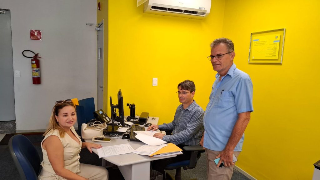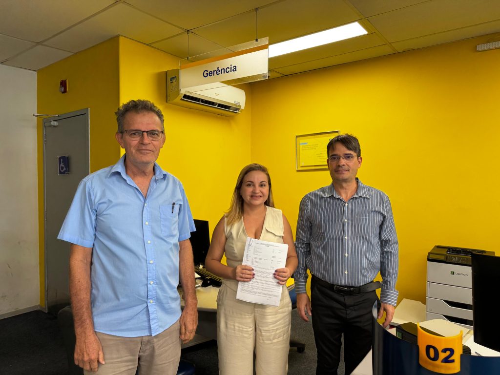 O senhor Raimundo Ivã da Silva e Souza (presidente do Instituto de Previdência), Janice da Silva Pereira, (Secretária de Planejamento, Administração e Finanças) e Paulo Spartacus Maria de Araújo (gerente do